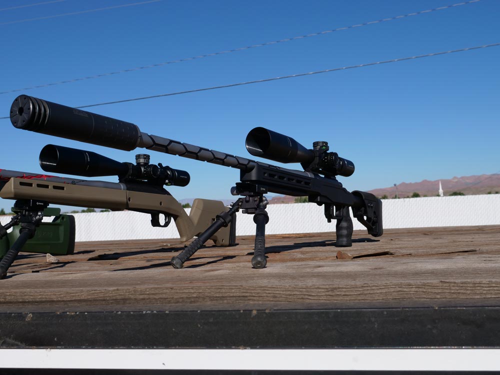The rifles used for this comparison include the Howa 1500 chambered in 6mm Creedmoor, Ruger American with the 6mmx47 Lapua, and Tikka T3x hosting the 6mm Dasher Norma. We chose these cartridges based on their strong following for competitive use. Using the same 105g Berger projectiles and H4350 powder to get a fair comparison for each cartridge design.